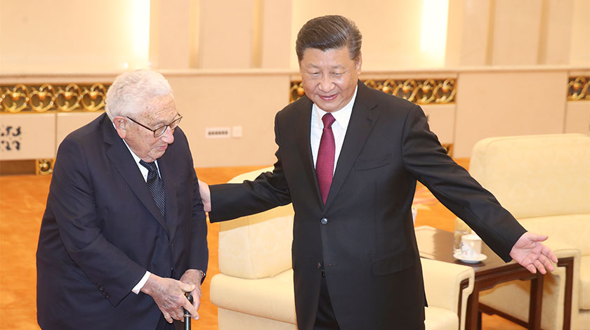 11月8日,中國國家主席習近平在北京人民大會堂會見美國前國務卿基辛格。(中新社圖片/ 盛佳鵬 攝)
