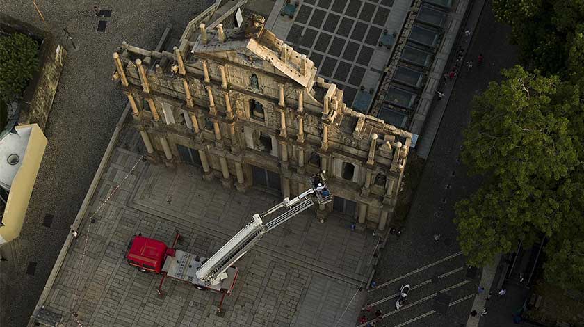 文化局將在大三巴牌坊正立面進行除草及銅像檢查工作