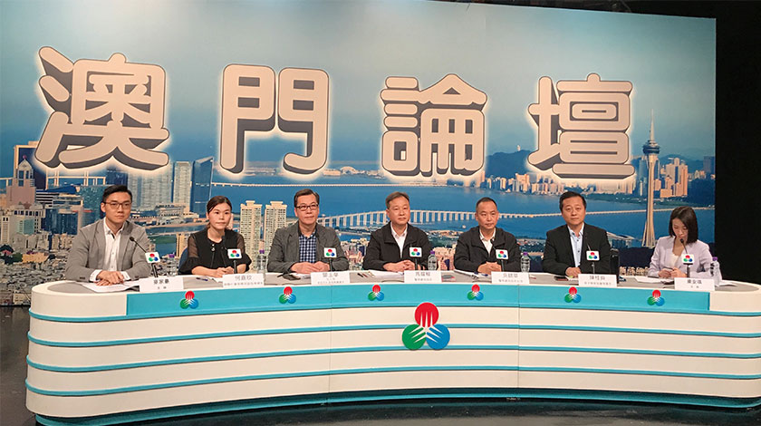 時事節目澳門論壇,昨邀請警察總局局長馬耀權、警察總局助理吳錦華、社工局家庭及社區服務廳廳長鄧玉華、海洋發展協會理事長陳桂舜、婦聯社會服務部副服務總監何嘉欣探討民防工作、擋潮閘及四月二十七日民防演練。