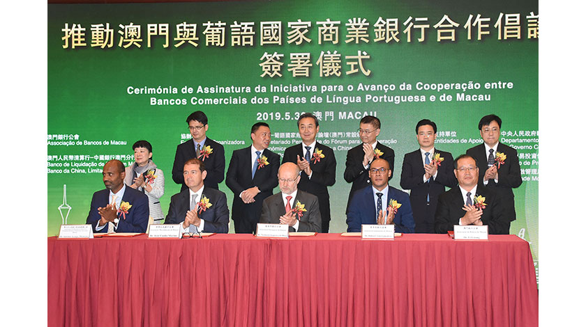 會上,澳門銀行公會與葡萄牙銀行公會、莫桑比克銀行公會、幾內亞比紹銀行與金融機構公會、聖多美銀行協會共同簽署《推動澳門與葡語國家商業銀行合作倡議書》。