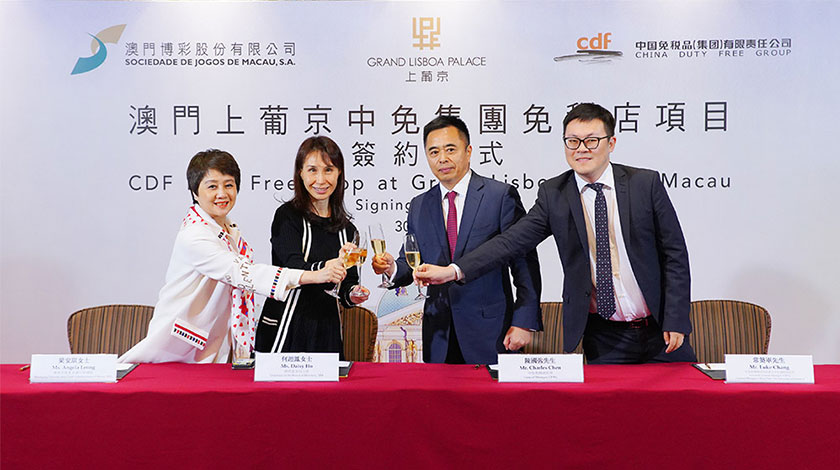 澳博董事局主席何超鳳、常務董事兼行政總監梁安琪,以及中免集團總經理陳國強、首席運營官李燦清、總經理助理兼中免國際總經理常築軍等出席簽約儀式。