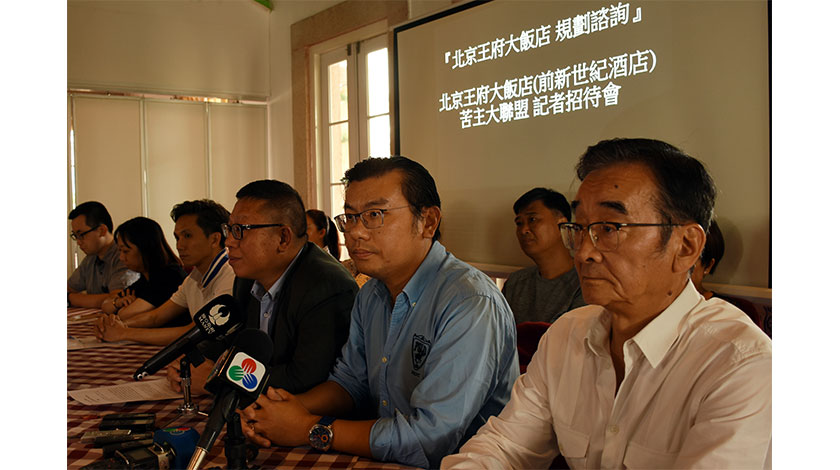 「北京王府大飯店 (前新世紀酒店) 苦主大聯盟」(簡稱聯盟) 指出,北京王府大飯店尚欠聯盟約一億元澳門幣的酒店訂房款未清還。聯盟已於二零一七年循民事訴訟對相關地段及物業進行查封追討;並對該地段及相關物業之前的業權轉移交易表示存疑,提出訴訟。