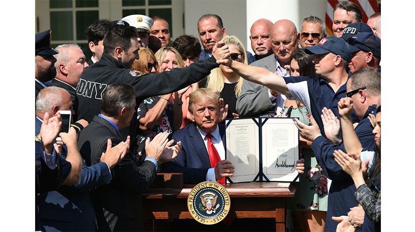 當地時間7月29日,美國總統特朗普在白宮簽署『永久授權‘9•11’受害者賠償基金』法案。(中新社圖片/陳孟統 攝)