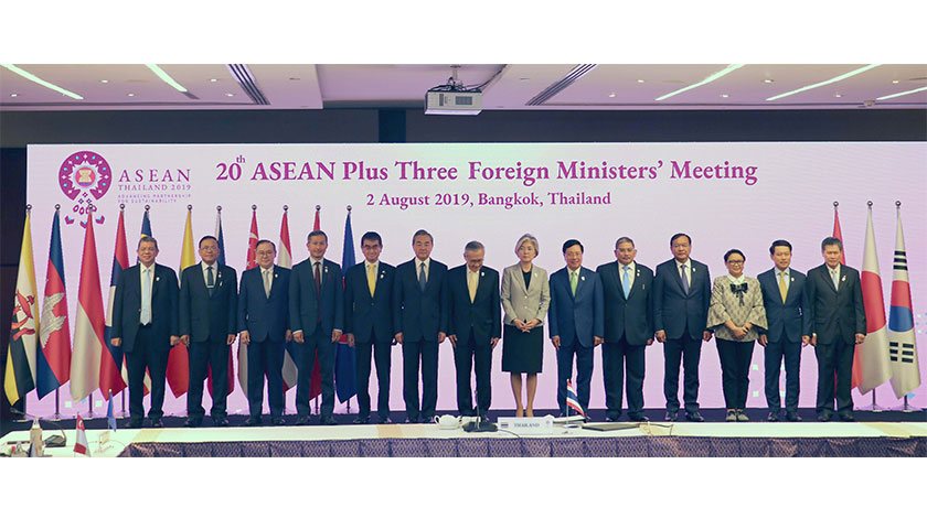 8月2日,第20屆東盟與中日韓(10+3)外長會在泰國曼谷舉行。中國國務委員兼外交部長王毅出席。(中新社圖片/王國安 攝)