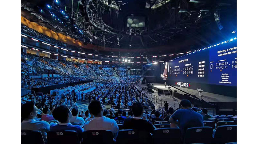 2019華為開發者大會8月9日在廣東東莞松山湖舉行,華為正式發佈自有操作系統—鴻矇。圖為鴻矇系統發佈現場。(中新社圖片/鍾欣 攝)