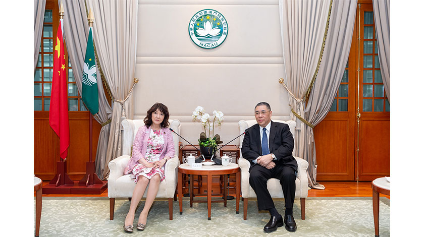 【特訊】行政長官崔世安昨日下午在政府總部與日本參議院議員、內閣府特命擔當大臣(地方創生兼女性活躍)片山皐月(Satsuki Katayama)會面(見圖),就繼續加深日本與澳門之間多方面合作交換意見。