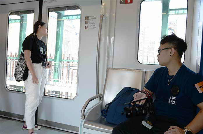 【本報訊】運建辦安排傳媒參觀採訪並試搭輕軌列車,吸引半百記者到場,一行人從氹仔碼頭站上兩節列車,一路不停站搭至海洋站,體驗了一轉氹仔線。