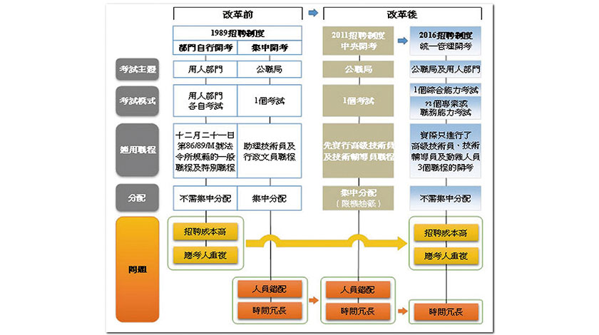 【本報訊】審計署昨發表可能是今屆政府最後一份衡工量值式審計報告,審計由行政公職局主責、六年內已三改的公務員招聘及甄選制度,揭示相關制度改革始終重蹈舊制度的招聘成本高、應考人重複、人員錯配、時間冗長的問題,甚至有更嚴重的情況,可謂亂象橫生。