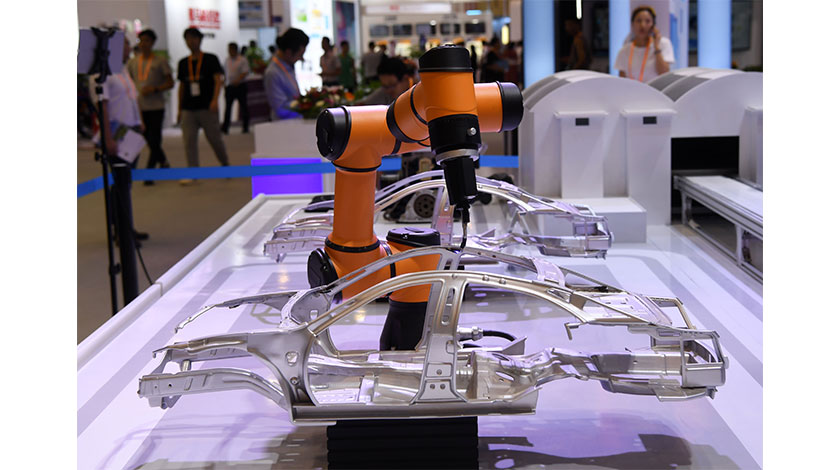 9月8日,運用5G網絡建設的智能製造工廠模型亮相『廈洽會』展館。當日,2019廈門國際投資貿易洽談會暨絲路投資大會(簡稱『廈洽會』)啟幕,吸引塞爾維亞、俄羅斯、日本等40多個國家和地區超過1500家企業參展,120個國家和地區的10萬餘名客商參會,共話投資合作新機遇。(中新社圖片/張斌 攝)
