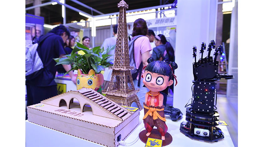 9月12日,展出的特色商品吸引觀眾駐足。當日,2019年第四屆淘寶造物節在浙江杭州開幕,400多家淘寶店和1000多種『新物種』特色商品亮相,展現年輕人的創意狂歡。 (中新社圖片/張茵 攝)