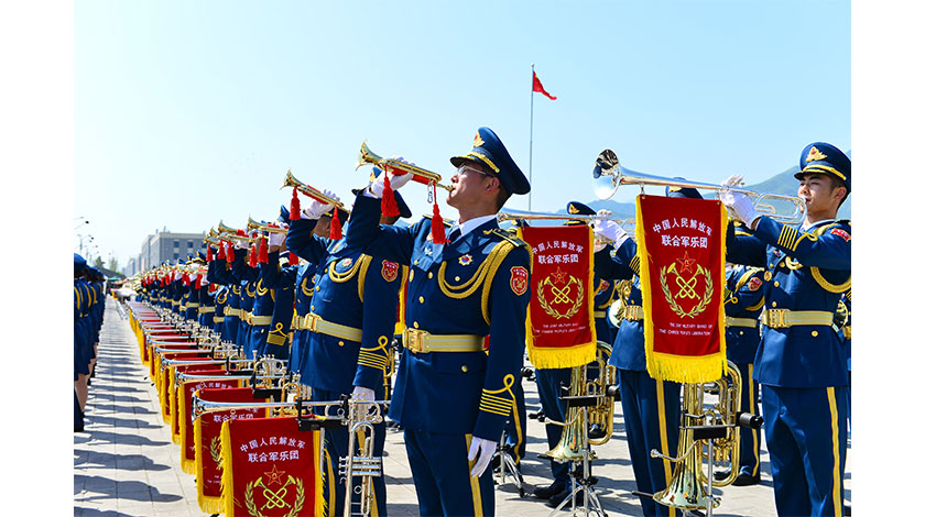 今年10月1日,慶祝中華人民共和國成立70周年大會將在北京天安門廣場隆重舉行,慶祝大會後將舉行盛大的閱兵式和群眾遊行。國慶閱兵編59個方(梯)隊和聯合軍樂團,總規模約1.5萬人,各型飛機160余架、裝備580台(套),是近幾次閱兵中規模最大的一次。據瞭解,聯合軍樂團是整個閱兵過程中入場最早、最後離開的一個方隊,要以立正姿態持續站立演奏4個小時左右。成員由來自全軍10個大單位的1000余名官兵組成,其中總指揮1名,副總指揮2名,分指揮6名。(中新社圖片/ 孫曉萌 攝)