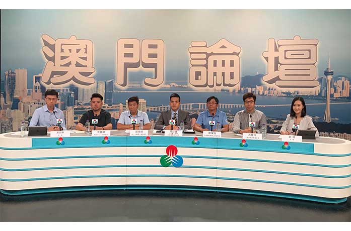昨日舉行的「澳門論壇」,就《道路交通法》中應否引入扣分制、新的士法成效等,邀請治安警交通廳交通警務處代處長馬超雄、交諮委委員古慶祥、的士司機總工會理事長郭良順、交通運輸業總工會理事長劉偉強、電召的士公司總經理余健龍發表意見。