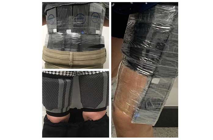 本月5日傍晚,海關接獲治安警察局通報,指在港珠澳大橋澳門口岸旅檢大樓入境大堂洗手間內,有入境旅客拆解綁纏身上的物品,懷疑進行不法活動,現場警員已截獲四名涉案人士。接報後,港珠澳大橋澳門海關站人員立即到場調查,發現洗手間內放有多部舊智能電話及電子零件,地上遺有膠紙等雜物,有強烈跡象顯示有人正進行走私活動,關員於是將四名可疑人士帶到旅客檢查區作進一步檢查。經詳細搜查後,分別在四名涉案人士身上及隨身行李中,查獲舊智能電話312部、電話零件80件及智能手錶錶芯零件97件。四名涉案人士承認收取報酬,協助同一間公司由香港偷運物品入境本澳,物品價值不詳。