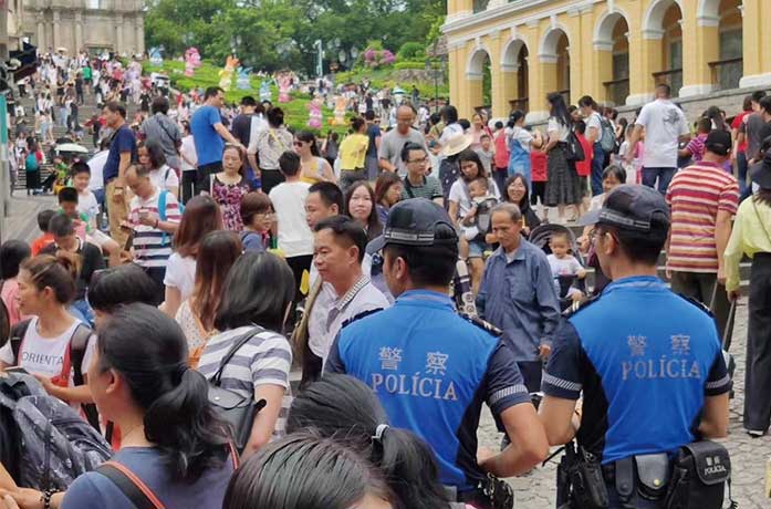 旅遊局透過手機短訊,建議旅客使用「智慧客流應用」了解澳門主要景點客流情況,作出合適的行程規劃安排,藉此引導旅客在客流高峰時段前往其他地區的景點。
