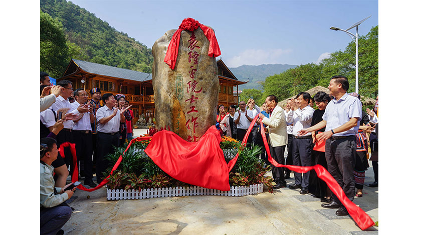 10月9日,袁隆平院士工作站在廣西桂林市灌陽縣新圩鄉小龍村正式成立,剛剛獲得『共和國勛章』的『世界雜交水稻之父』袁隆平院士親臨現場揭牌,將在這裡繼續追求他的水稻高產夢,讓雜交水稻造福世界。圖為袁隆平院士工作站揭牌儀式現場。(中新社圖片/唐夢憲 攝)