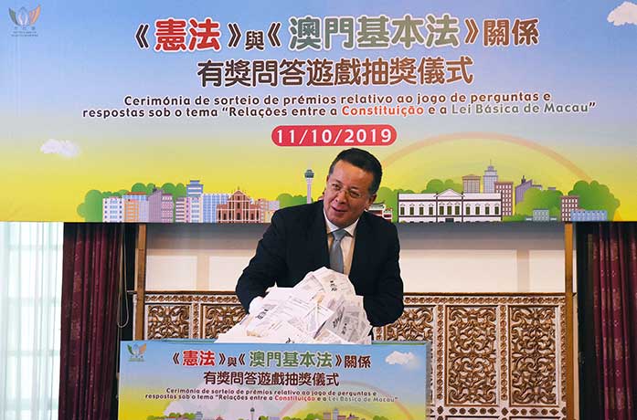 【本報訊】為讓居民對《憲法》與《澳門基本法》的關係有更深認識,市政署在七至九月透過流動展覽車進行巡迴展覽及有獎問答遊戲。後者昨舉行前三獎及四十名安慰抽獎儀式。官方將有專人通知各得獎者。