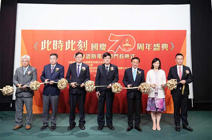 【特訊】10月11日下午,由中央廣播電視總台央視頻、大灣區之聲、中央人民政府駐澳門特別行政區聯絡辦公室宣傳文化部、澳門各界青年組織活動籌備委員會聯合主辦,4K粵語版電影《此時此刻——國慶70周年盛典》澳門首映式在永樂戲院舉行。