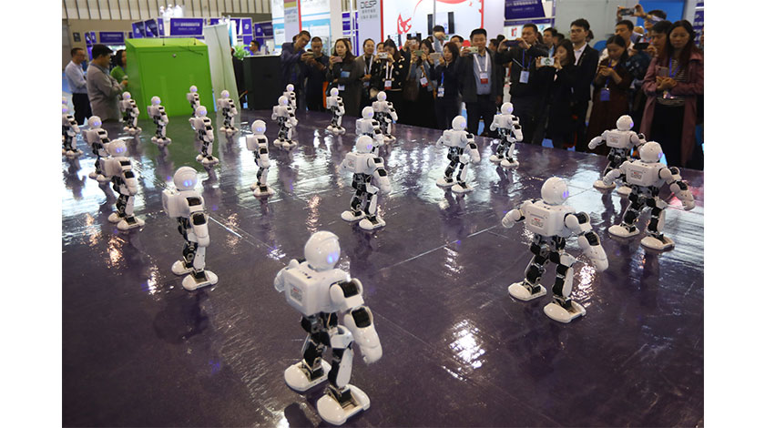 10月18日,工作人員在展台內操作具有編程教學功能的機器人。當日,2019世界智能製造大會在南京國際博覽中心舉行開幕式。本次大會以『智能新視界,工業新未來』為主題,設立發佈會、高峰會、嘉年華和博覽會四大板塊體系,共吸引來自國內外近300家企業參展。(中新社圖片/泱波 攝)