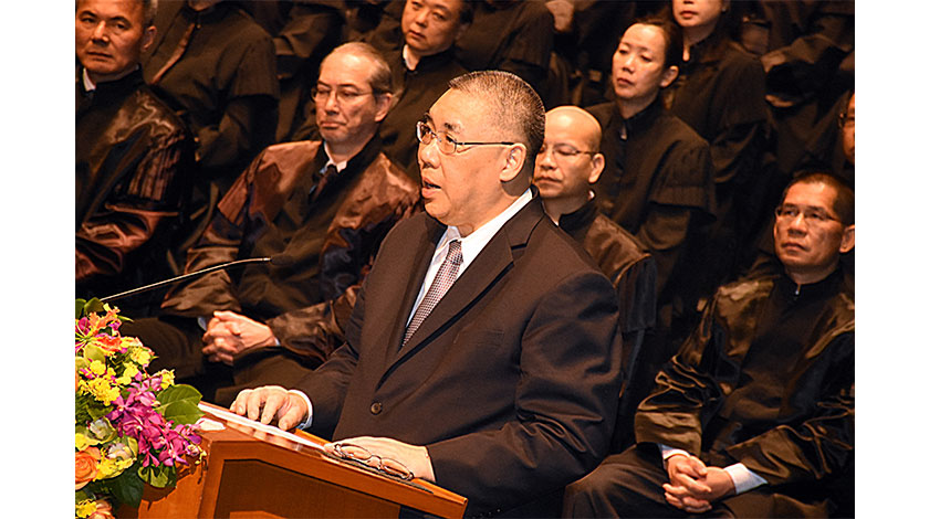 致辭提到自己第十次以特首身份出席的崔世安說,很高興能夠與各嘉賓再聚集一堂迎接新司法年度的開始,共同見證特區司法界莊嚴隆重的時刻。他並代表政府感謝全體司法官員、司法輔助人員及法律界人士的辛勤工作。
