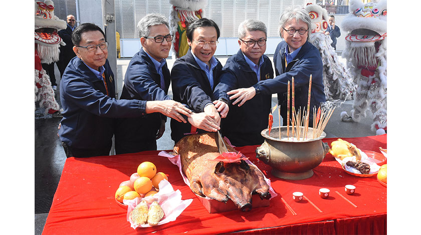 大賽車組委會昨午在集車區驗車處舉行拜神儀式,一眾組委會成員出席,醒獅、上香、化寶及切豬分肉等,祈求賽事安全順利進行。