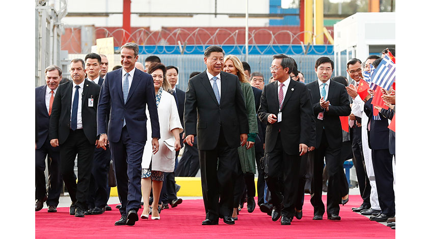習近平訪希期間,先後同希臘總統帕夫洛普洛斯、總理米佐塔基斯舉行會談,向希臘無名戰士紀念碑獻花圈,參觀中遠海運比雷埃夫斯港項目。中希雙方發表了關於加強全面戰略夥伴關係的聯合聲明,并簽署了投資、港口、金融、能源、教育等多個領域的雙邊合作文件。豐富的行程安排和多項成果反映出中希兩國全面擴大和深化雙邊關係的意願。