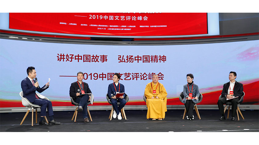 11月16日,由人民日報社指導,人民日報社人民論壇雜誌社、國家治理周刊、人民智庫、人民論壇網共同主辦的『深入學習貫徹十九屆四中全會精神——2019國家治理高峰論壇年會”在北京人民日報社新媒體大廈召開。圖為2019中國文藝評論峰會現場。(中新社圖片/韓海丹 攝)