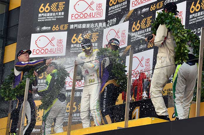 【本報訊】澳門房車盃總冠軍和總亞軍分別由香港車手潘德俊及其隊友馮家柱駕駛 Suncity Racing Team 的標緻 RCZ 1600cc 渦輪增壓賽車奪得,總季軍由屬於 1950cc 組別的澳門車手蘇沙 (Felipe de Souza) 駕駛 TA Motorsport 奧迪 RS 3 TCR 賽車奪得。