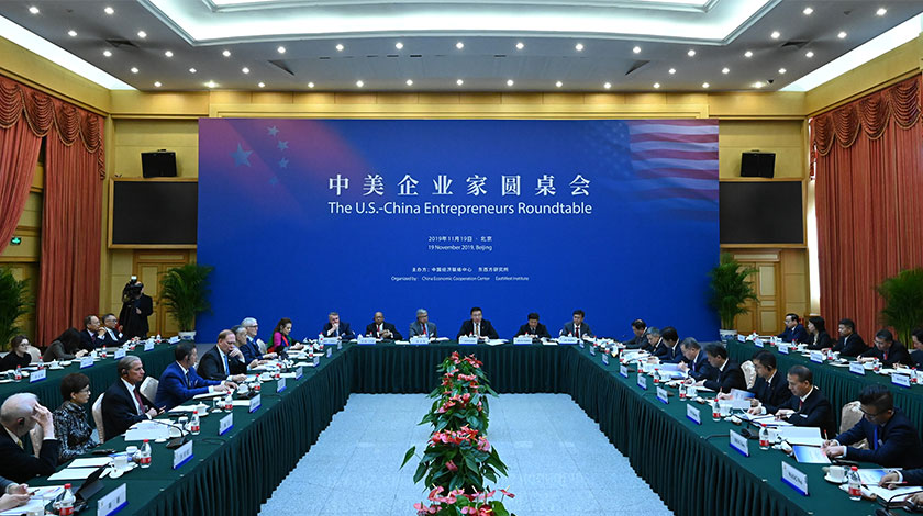 11月19日,由中國經濟聯絡中心與美國東西方研究所共同主辦的中美企業家圓桌會在北京舉行。與會人士普遍認為,在當前形勢下,更應該維護好、發展好中美關係。(中新社圖片/張興龍 攝)