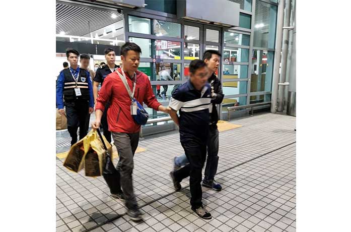 治安警及司警據報聯合偵查,在天眼系統配合下,得知五名匪徒作案後跑回附近的賓館,分贜後分乘的士到國際機場。警方於下午在機場禁區成功拘捕五名涉案男女,起回全數十四條金錬。