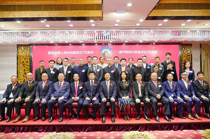 【特訊】澳門珠海各級政協委員聯誼會於週三晚舉行慶祝新中國成立70周年、澳門回歸祖國20周年及該會成立5周年慶祝晚宴。澳門中聯辦協調部部長傅鐵生,全國政協陳虹、梁樹森,立法會議員胡祖杰、馮家超,珠海市政協秘書長王毅、珠海市委統戰部副部長曹風雲等到賀,場面熱鬧。