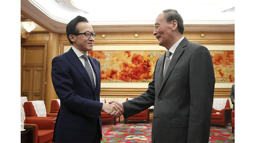 12月6日,中國國家副主席王岐山在北京中南海會見日本國家安全保障局長北村滋。(中新社圖片/盛佳鵬 攝)