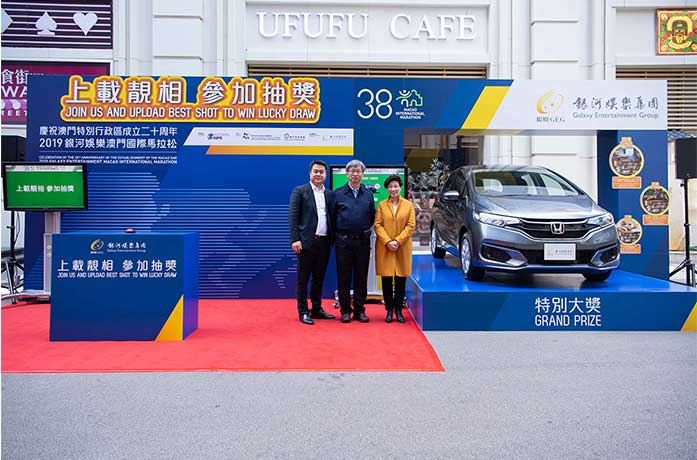 銀娛公共關係高級副總裁林志成抽出「上載靚相,參加抽獎」特別大獎,獎品為本田五門私家車一部,稅前價值約澳門幣143000元。林志成表示,作為馬拉松賽事第16年的冠名贊助商,銀娛積極助力澳門特區政府推動本地體育,並為賽事引入包括「上載靚相,參加抽獎」等不同元素,以多元方式吸引全城投入馬拉松的歡樂氣氛,促進體育旅遊的發展。