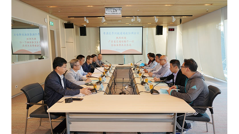 廣東省交通運輸廳航道管理處處長鄒德華、廣東省航道事務中心副主任劉陽林等人日前來澳,獲澳門海事及水務局副局長曹賜德、海事活動廳廳長胡柱鵬接待。會議上雙方談及粵港澳大灣區發展計劃對廣東省及澳門是難得的發展機遇,並且認同共同推進粵澳區界河航道建設是助力粵港澳大灣區建設的重要舉措。