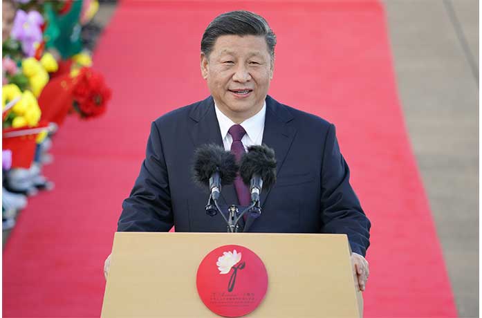 習近平這次赴澳門受到海內外高度關注,百余名中外記者在機場等候。習近平走到採訪區向在場記者問好。他說,我很高興再次來到美麗的澳門。今年我們隆重慶祝了中華人民共和國成立70周年。澳門回歸祖國20周年是今年全國人民關心的又一件大事。我代表中央政府和全國各族人民,向澳門同胞致以熱烈祝賀和美好祝願。
