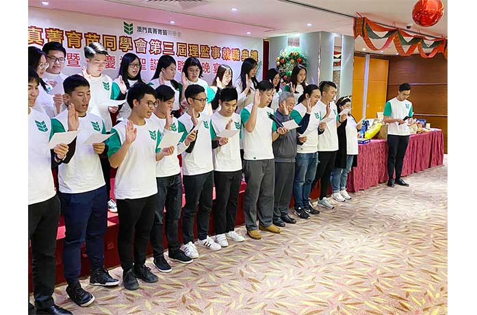 真菁育苗同學會理事長曾海聰同學在晚宴上致詞時表示,去年,同學會經歷了充實的一年。除了支持由工聯、街總和婦聯每年所舉辦之育苗獎學金系列活動外,同學會今年也主辦了多項活動,參與人次近三百人,當中包括兩日一夜大灣區考察交流、珠海星樂度團體建設營、為護老院之公公婆婆送愛心的「中秋佳節獻開心」系列活動、保齡球友誼賽、樟木槓工作坊、皮革工作坊、香薰蠟燭工作坊、「誰是畢加索」油畫班、麵包咖啡超人中山遊記之手作坊等等,以及協辦由工聯、街總和婦聯三會合辦的尋找澳門「真、善、美」城市定向比賽。部份理監事成員更擔任了活動籌委、工作人員,在團隊內發揮各自的長處,使活動皆順利舉行,讓同學及年青人共同交流及學習。未來,同學會務必會繼續秉持創會的初衷,並努力組織多樣化的活動,為澳門社會培育積極參與社會事務和服務社會的人才,為澳門發展作出貢獻。