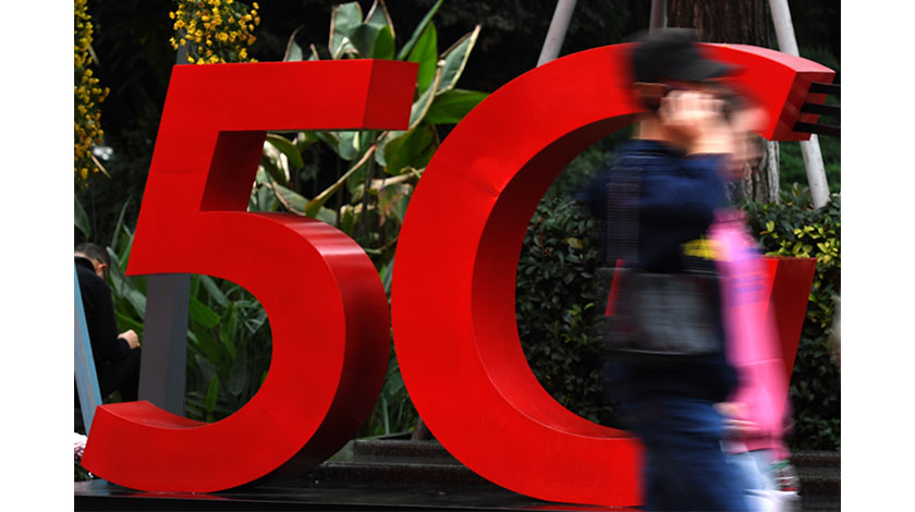 12月26日,中國信息通信研究院副院長王志勤表示,5G發展初期的速度超過4G,預計2019年底全球5G用戶會達到1000萬戶。資料圖為重慶街頭擺放的5G標識。(中新社圖片/陳超 攝)