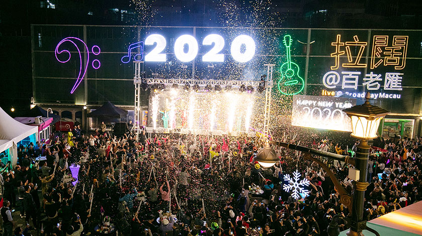 「澳門百老匯」美食街——歡樂坊自夜晚9時起開啓派對模式,熱鬧表演輪番登場,與在場賓客盡情狂歡共赴2020!由百老匯特色黃包車歌手打頭陣,駐場樂隊Bobo & Gang、特邀DJ Julian及本地舞蹈團體ZEAL和L.D.G.緊隨其後,獻上精彩演出,將派對氣氛燙得火熱。當時針踏正午夜一刻,全場一起歡呼舉杯,高漲的情緒達至頂峰,觥籌交錯中迎接充滿希望和夢想的2020年。