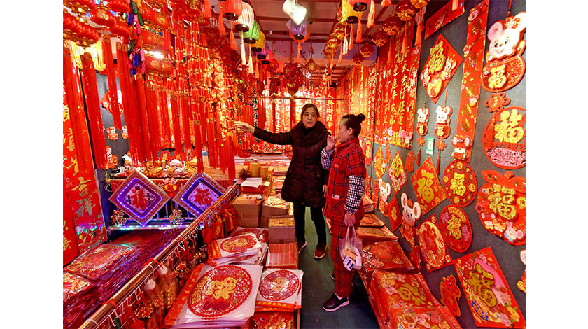 1月3日,市民在一家商舖內挑選春節飾品。春節臨近,重慶市民開始置辦年貨,喜迎新春佳節。(中新社圖片/黃河 攝)