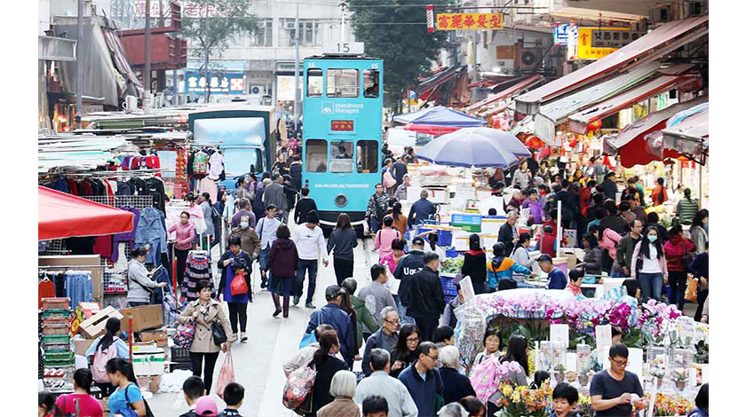 1月14日,香港北角熙熙攘攘的街市。香港行政長官林鄭月娥當天在記者會上公佈,政府將推出10項民生政策措施,初步估算或涉及100億元經常開支,每年大約增加2%,但公共財政穩健,自2003年未出現過赤字,有過萬億財政儲備。林鄭月娥表示,希望以大力度正面積極回應社會,建立關愛共融是政府的期望。(香港中通社)