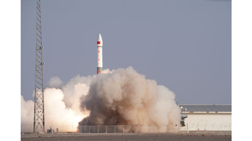 北京時間1月16日11時2分,中國在酒泉衛星發射中心用快舟一號甲運載火箭,成功將中國首顆通信能力達10Gbps(10吉比特每秒)的低軌寬帶通信衛星——銀河航天首發星發射昇空。圖為快舟一號甲火箭點火起飛。(中新社圖片/劉偉 攝)