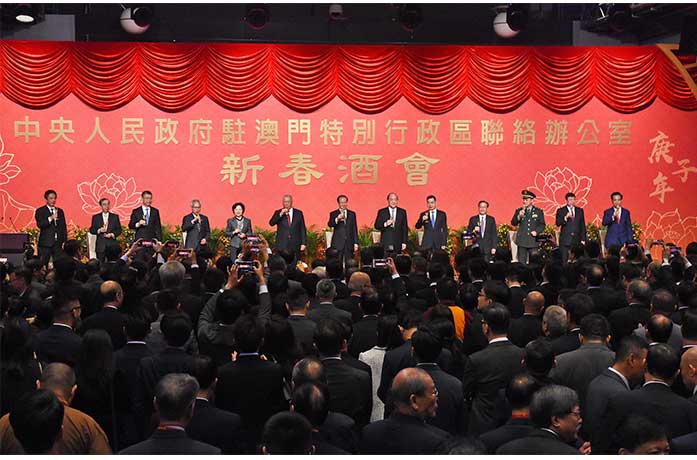 酒會昨假旅遊塔舉行,賀一誠、全國政協副主席何厚鏵、中聯辦主任傅自應、外交公署特派員沈蓓莉、駐澳解放軍政委孫文、立法會主席高開賢、終審法院院長岑浩輝等出席主禮。逾五百獲邀賓客、官員出席。
