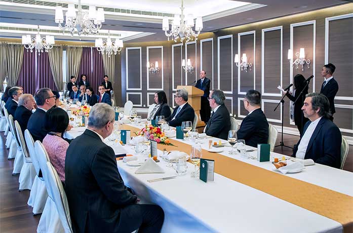 行政長官中午宴請本地葡文及英文傳媒負責人,他致辭時強調,特區政府將一如既往,繼續嚴格按照《基本法》及相關法律的規定,維護媒體的新聞自由,重視與傳媒的溝通和良性互動,更好地協助和配合傳媒履行採訪、報導和接收資訊的權利,讓資訊的自由流通完全得到制度上的保障。