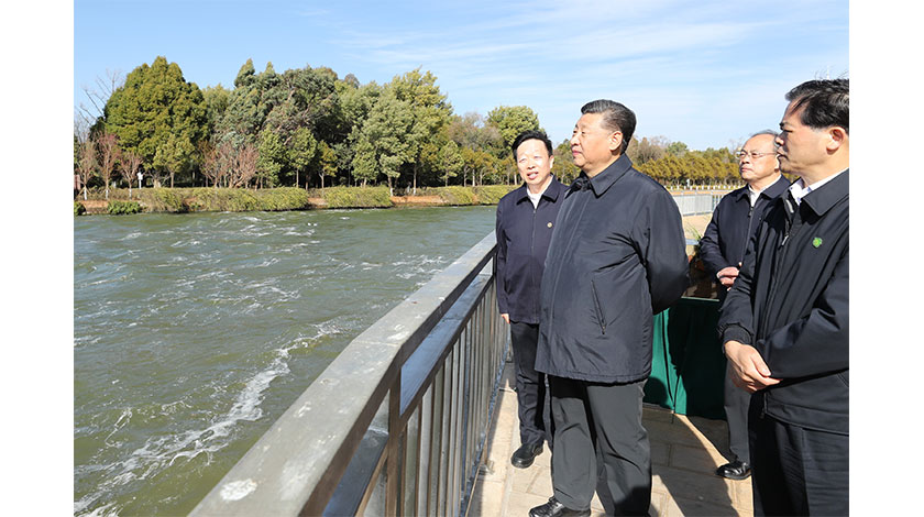 1月20日,正在雲南考察的中共中央總書記、國家主席、中央軍委主席習近平來到昆明,前往滇池星海半島生態濕地,察看滇池保護治理情況。(新華社記者 鞠鵬 攝)