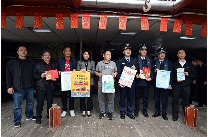 【特訊】每年農曆新年前後,本澳內港錨泊區均有各類漁船陸續回澳度歲。為了避免漁船在內港錨泊期間發生火警意外及偷竊事件,以及防止垃圾污染海上環境,海事及水務局與海關、警察總局、消防局、澳門漁民互助會及澳門遠洋漁業發展暨船東協會代表昨日上午登船探訪漁民,向錨泊在內港的漁船派發海上安全及清潔宣傳品,藉此提高漁民對防火、防盜的警覺性及防污意識。