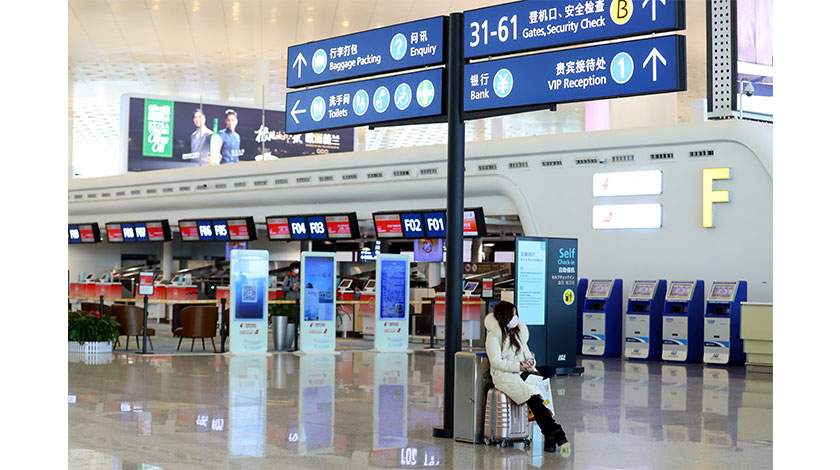 1月23日,武漢天河機場旅客寥寥。武漢市新型冠狀病毒感染的肺炎疫情防控指揮部23日淩晨發佈通告稱,自2020年1月23日10時起,全市城市公交、地鐵、輪渡、長途客運暫停運營;無特殊原因,市民不要離開武漢,機場、火車站離漢通道暫時關閉。(中新社圖片/張暢 攝)