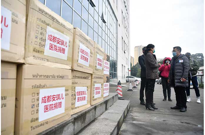 2月3日,作為成都市新型冠狀病毒感染的肺炎定點收治醫院,成都市公共衛生臨床醫療中心獲得同行的愛心捐贈。當日上午,成都安琪兒婦產醫院將該院的醫用外科口罩、N95醫療專用口罩捐贈給成都市公共衛生臨床醫療中心,為奮戰在“抗疫”一線的醫護人員提供保護。 (中新社圖片/ 張浪 攝)