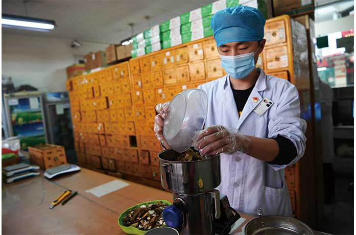 2月11日,甘肅省新型冠狀病毒肺炎疫情防控工作新聞發佈會在蘭州舉行。甘肅省衛生健康委主任郭玉芬回答記者提問時稱,中醫藥在治療新冠肺炎過程中,發揮了巨大作用。除了個別病人不願意接受中醫治療,絕大部分病人都採取了中西醫結合的辦法,效果很好。資料圖為蘭州大學第一醫院中醫藥房。(中新社圖片/楊艶敏 攝)