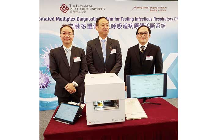【特訊】2月11日,香港理工大學宣佈,經過四年研究,成功研發全自動多重傳染性呼吸道病原體診斷系統,可快速於一小時内,準確檢測超過四十種病原體,包括新型冠狀病毒(NCP),沙士(SARS),中東呼吸综合症病毒(MERS),禽流感(H5、H7、 H9)等。