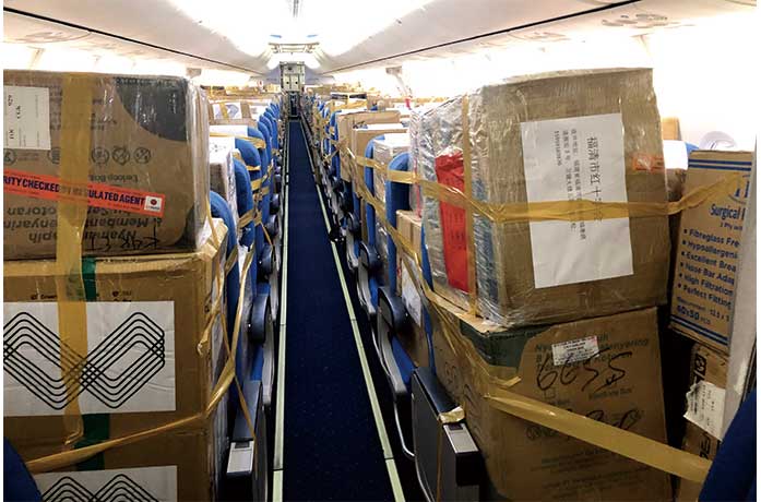 2月12日,廈門航空把客機當“貨機”用,從福州飛往印尼雅加達運輸口罩、防護服、護目鏡等防疫物資回國。這也是2月5日中國與印尼間停航以來的首次貨運包機。 (中新社圖片/ 鍾欣 攝)