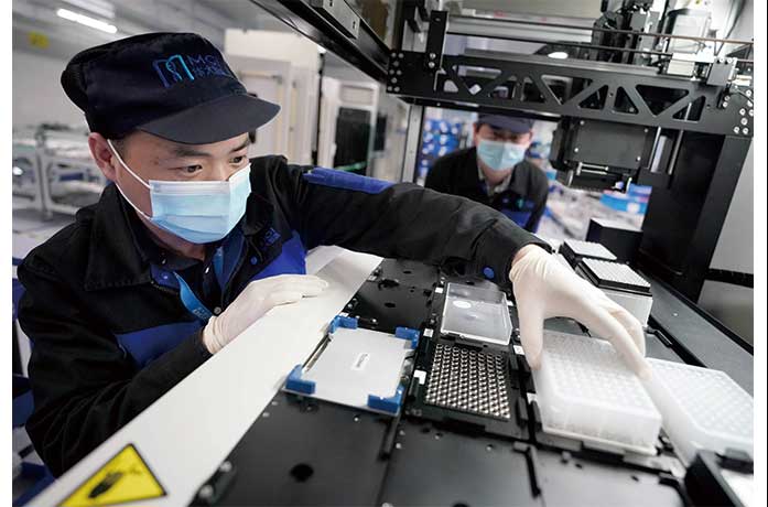 武漢「光谷」企業生產忙2月14日,武漢華大智造有限公司員工在進行高通量自動化樣本製備系統的調試。該系統是提取新冠病毒RNA序列自動化設備,每台日測樣本超過1000份。 新冠肺炎疫情發生以來,有著「中國光谷」之稱的武漢東湖新技術開發區的部分企業一直堅持生產,部分企業于近日恢復生產。(新華社記者 王毓國 攝)